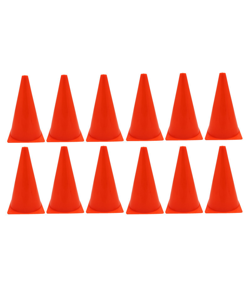 Create an obstacle course, mark boundaries, or practice agility with the Hi-Visibility Fluorescent Poly Cone. These Hi-Visibility Fluorescent Poly Cones are a bright fluorescent orange. Each cone measures 9 inches. Sold as a pack of 12 cones.