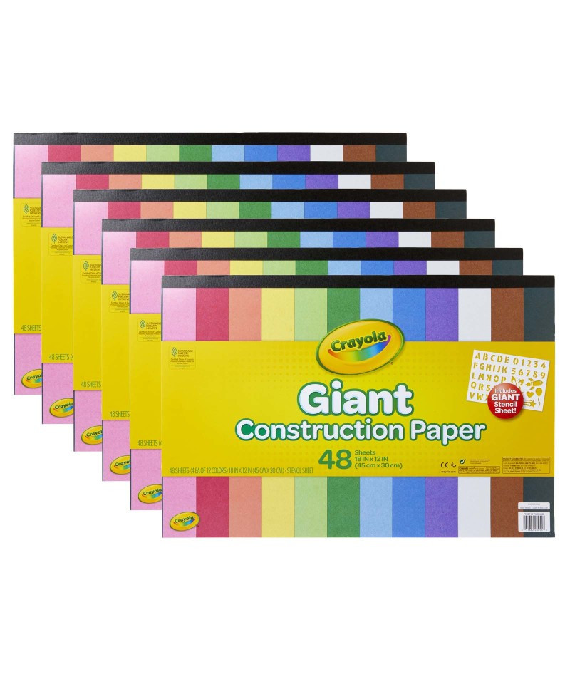 School projects and homemade crafts are made brighter with this Giant Construction Paper & Stencil set from Crayola. Give kids simple-to-use art tools and the space they need to create, and watch their imaginations soar. Sheets measure 12" x 18". Each pad includes 6 sheets of each color including pink, red, orange, yellow, green, blue, white, and black. Each pad also includes an extra-large stencil that helps kids to draw with clean lines. Sold as a pack of 6 construction paper pads.