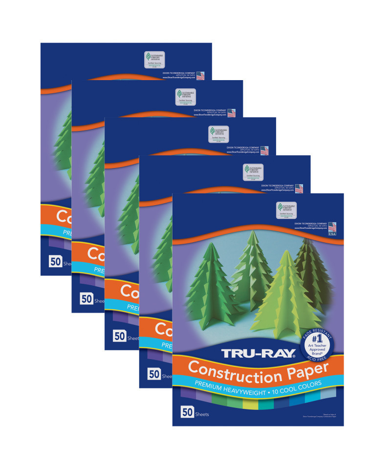 Heavyweight 100% vat-dyed sulphite with longer, stronger fibers. Tru-Ray® Construction Paper is tough enough to take scoring, folding and curling without cracking and tearing. Its superior fade-resistance keeps projects brighter and fresher longer. Colors include: Festive Green, Turquoise, Brilliant Lime, Violet, Holiday Green, Sky Blue, Royal Blue, Purple, Atomic Blue and Blue. Acid free for less fade. Recyclable. Measures 9" x 12". Each pack includes 50 sheets. Sold as 5 packs for a total of 250 sheets.