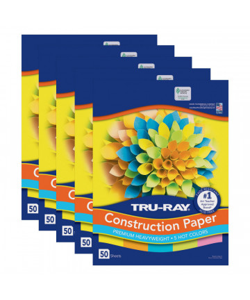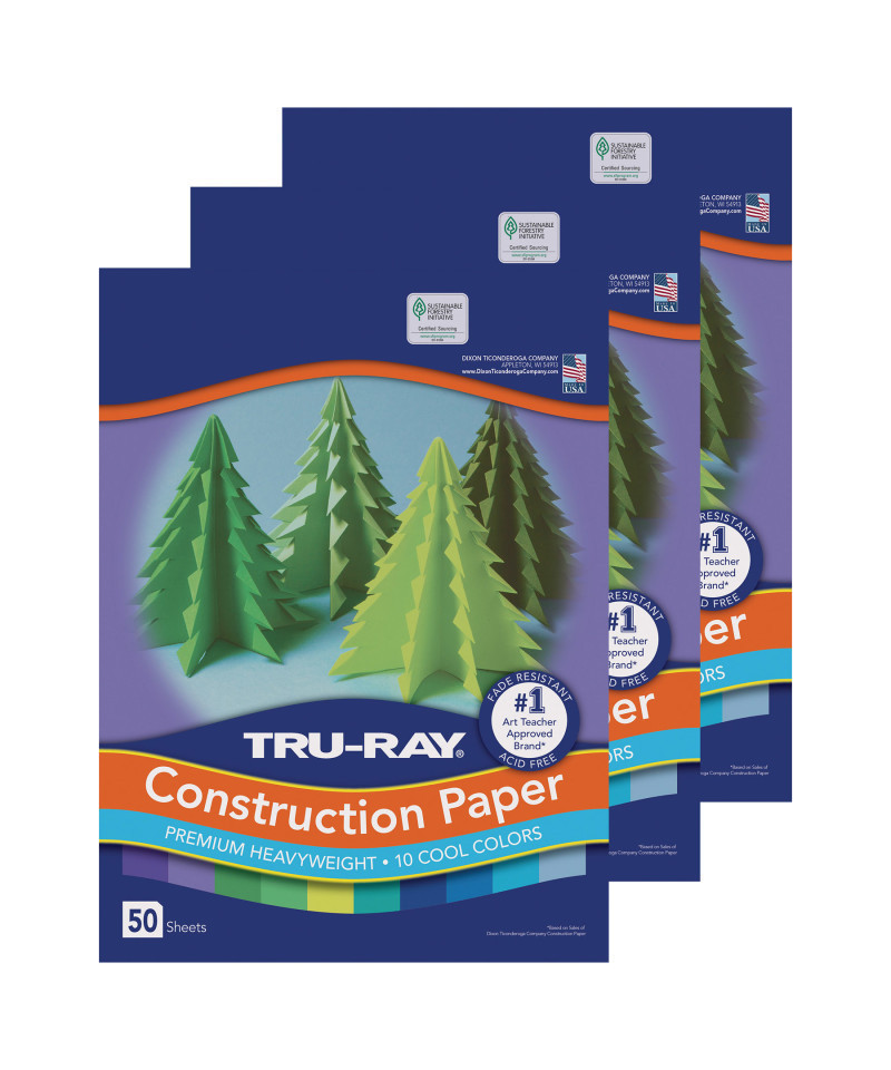 Heavyweight 100% vat-dyed sulphite with longer, stronger fibers. Tru-Ray® Construction Paper is tough enough to take scoring, folding and curling without cracking and tearing. Its superior fade-resistance keeps projects brighter and fresher longer. Colors include: Festive Green, Turquoise, Brilliant Lime, Violet, Holiday Green, Sky Blue, Royal Blue, Purple, Atomic Blue and Blue. Acid free for less fade. Recyclable. Measures 12" x 18". Each pack includes 50 sheets. Sold as 3 packs for a total of 150 sheets.