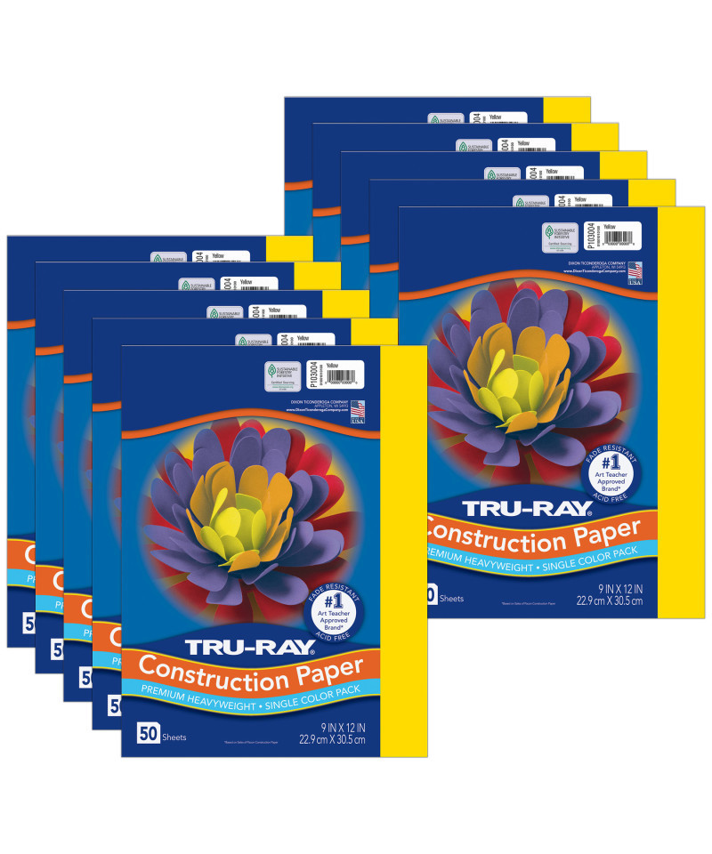 Heavyweight 100% vat-dyed sulphite with longer, stronger fibers. Tru-Ray® Construction Paper is tough enough to take scoring, folding and curling without cracking and tearing. Its superior fade-resistance keeps projects brighter and fresher longer. Available in 28 stay bright colors. Acid free for less fade. 50% recycled fiber content and recyclable. Measures 9" x 12". Each pack includes 50 sheets. Sold as 10 packs for a total of 500 sheets.