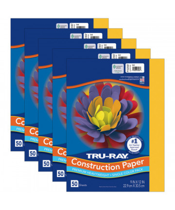 Heavyweight 100% vat-dyed sulphite with longer, stronger fibers. Tru-Ray® Construction Paper is tough enough to take scoring, folding and curling without cracking and tearing. Its superior fade-resistance keeps projects brighter and fresher longer. Available in 28 stay bright colors. Acid free for less fade. 50% recycled fiber content and recyclable. Measures 9" x 12". Each pack includes 50 sheets. Sold as 5 packs for a total of 250 sheets.