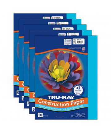 Tru-Ray® Construction Paper, Heavyweight, Turquoise, 9" x 12", 50 Sheets Per Pack, 5 Packs