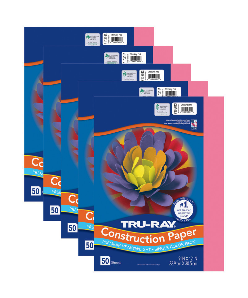 Tru-Ray® Construction Paper, Heavyweight, Shocking Pink, 9" x 12", 50 Sheets Per Pack, 5 Packs