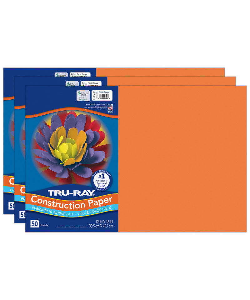 Heavyweight 100% vat-dyed sulphite with longer, stronger fibers. Tru-Ray® Construction Paper is tough enough to take scoring, folding and curling without cracking and tearing. Its superior fade-resistance keeps projects brighter and fresher longer. Available in 28 stay bright colors. Acid free for less fade. 50% recycled fiber content and recyclable. Measures 12" x 18". Each pack includes 50 sheets. Sold as 3 packs for a total of 150 sheets.