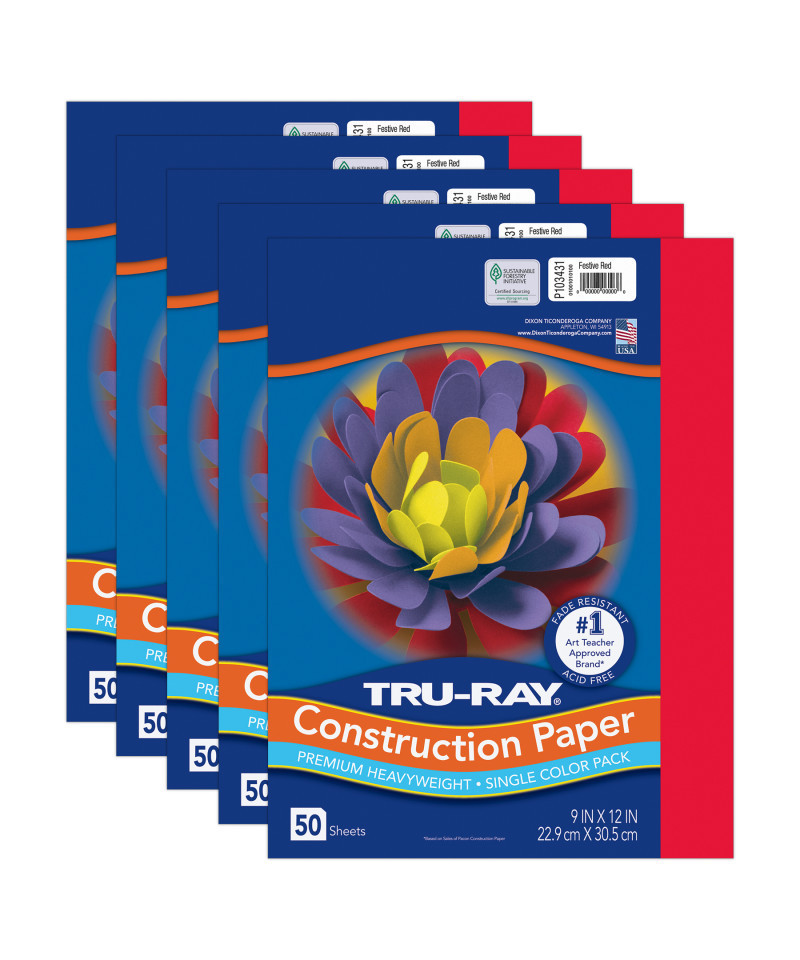 Heavyweight 100% vat-dyed sulphite with longer, stronger fibers. Tru-Ray® Construction Paper is tough enough to take scoring, folding and curling without cracking and tearing. Its superior fade-resistance keeps projects brighter and fresher longer. Available in 28 stay bright colors. Acid free for less fade. 50% recycled fiber content and recyclable. Measures 9" x 12". Each pack includes 50 sheets. Sold as 5 packs for a total of 250 sheets.