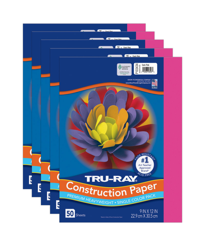 Tru-Ray® Construction Paper, Heavyweight, Dark Pink, 9" x 12", 50 Sheets Per Pack, 5 Packs