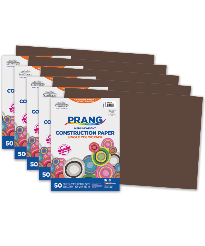 Prang® Construction Paper, Medium Weight, Dark Brown, 12" x 18", 50 Sheets Per Pack, 5 Packs
