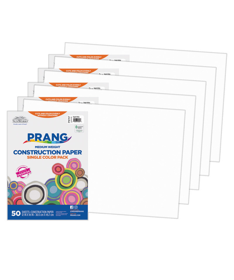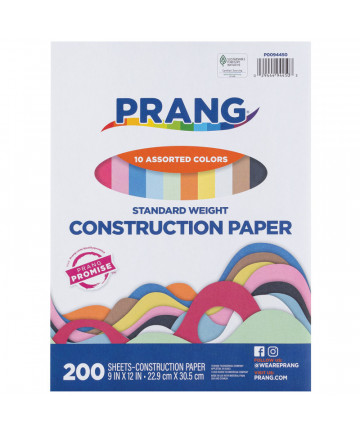 Prang® Medium Weight Groundwood Construction Paper provides the best value in school grade construction paper. It is the perfect solution for school projects and other arts and crafts. It has bright and consistent colors, is slightly textured and cuts and folds evenly without cracking. Recyclable. Measures 12" x 18". Each pack includes 50 sheets. Sold as 5 packs for a total of 250 sheets.