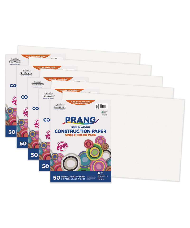 Prang® Medium Weight Groundwood Construction Paper provides the best value in school grade construction paper. It is the perfect solution for school projects and other arts and crafts. It has bright and consistent colors, is slightly textured and cuts and folds evenly without cracking. Recyclable. Measures 12" x 18". Each pack includes 50 sheets. Sold as 5 packs for a total of 250 sheets.