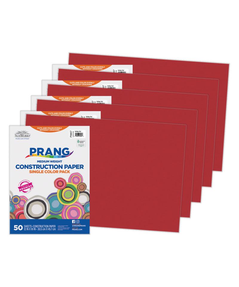 Prang® Medium Weight Groundwood Construction Paper provides the best value in school grade construction paper. It is the perfect solution for school projects and other arts and crafts. It has bright and consistent colors, is slightly textured and cuts and folds evenly without cracking. Recyclable. Measures 12" x 18". Each pack includes 50 sheets. Sold as 5 packs for a total of 250 sheets.