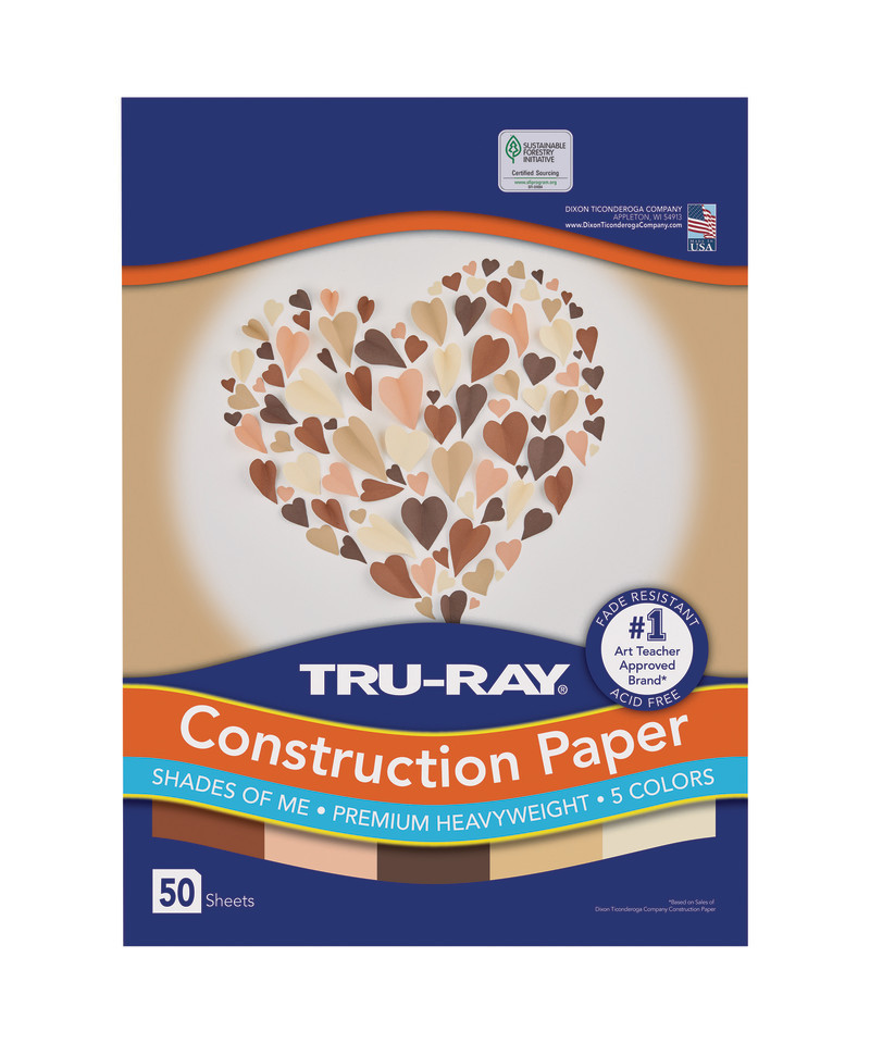 Every student is unique and that’s why we make Tru-Ray® Shades of Me. This premium, heavyweight, construction paper comes in a variety of hues, from ivory to dark brown. Tru-Ray® Construction Paper is tough enough to take scoring, folding and curling without cracking and tearing. Its superior fade-resistance keeps projects brighter and fresher longer. Five creative shades for inclusive curriculums. Colors include: Ivory, Almond, Salmon, Warm Brown and Dark Brown. Acid free for less fade. 50% recycled fiber content and recyclable. Measures 9" x 12". Each pack includes 50 sheets.