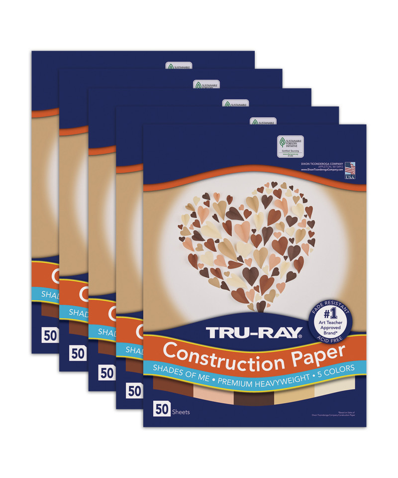 Every student is unique and that’s why we make Tru-Ray® Shades of Me. This premium, heavyweight, construction paper comes in a variety of hues, from ivory to dark brown. Tru-Ray® Construction Paper is tough enough to take scoring, folding and curling without cracking and tearing. Its superior fade-resistance keeps projects brighter and fresher longer. Five creative shades for inclusive curriculums. Colors include: Ivory, Almond, Salmon, Warm Brown and Dark Brown. Acid free for less fade. 50% recycled fiber content and recyclable. Measures 9" x 12". Each pack includes 50 sheets. Sold as 5 packs for a total of 250 sheets.
