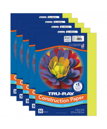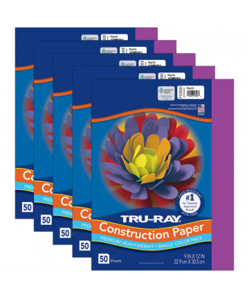 Heavyweight 100% vat-dyed sulphite with longer, stronger fibers. Tru-Ray® Construction Paper is tough enough to take scoring, folding and curling without cracking and tearing. Its superior fade-resistance keeps projects brighter and fresher longer. Colors include: Festive Green, Turquoise, Brilliant Lime, Violet, Holiday Green, Sky Blue, Royal Blue, Purple, Atomic Blue and Blue. Acid free for less fade. Recyclable. Measures 12" x 18". Each pack includes 50 sheets. Sold as 5 packs for a total of 250 sheets.