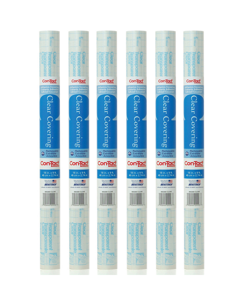 Clear contact paper is great for sealing and protecting. Use it on maps, for crafts, to cover notebooks and more. A grid on the reverse helps you measure accurately and cut neatly. Easy to install, easy to keep clean, and easy to remove. Special adhesive allows it to be repositioned during installation without leaving sticky residue. Each roll measures 18"W x 9'L. Pack of 6 rolls.