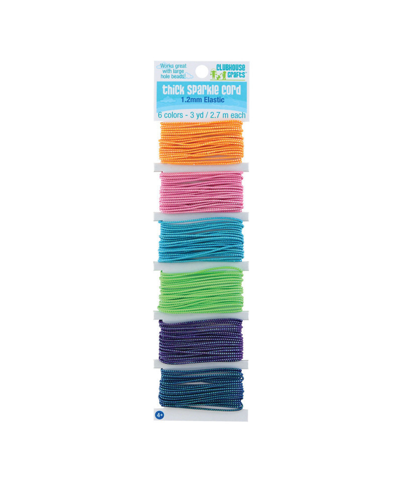 Create jewelry with this Thick Sparkle Cord. Perfect for stringing beads or adding to tags. Each pack includes 3 yards each of 6 colors - 18 yards... Add to cart Clubhouse Crafts® Thick Sparkle Elastic Cord, 6 Colors,... $30.78