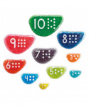 - 10 SQUISHY, SENSORY PEBBLES -- These squishy plastic counting pebbles are numbered 1-10. Each counter features a numeral and a corresponding dot pattern to help children visualize numbers.