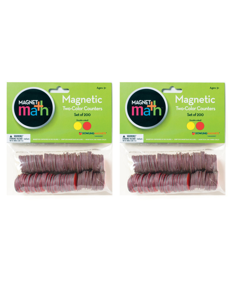 Double-sided, just flip them over! Magnetic manipulatives are so versatile. Great for teaching counting and cardinality, operations, base-ten concepts and more. Features flexible magnet material and red/yellow colors to match counters in the most popular math programs. Measure 1" each. Each pack includes 200 counters. Sold as 2 packs for a total of 400 counters.