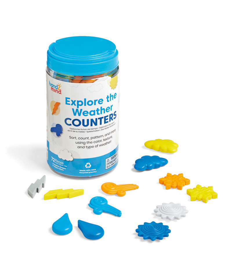 - These colorful Explore the Weather Counters come in 6 weather-related shapes (sun, cloud, lightning, rain, wind, snow) and in 6 different colors to help children learn to identify basic weather elements.