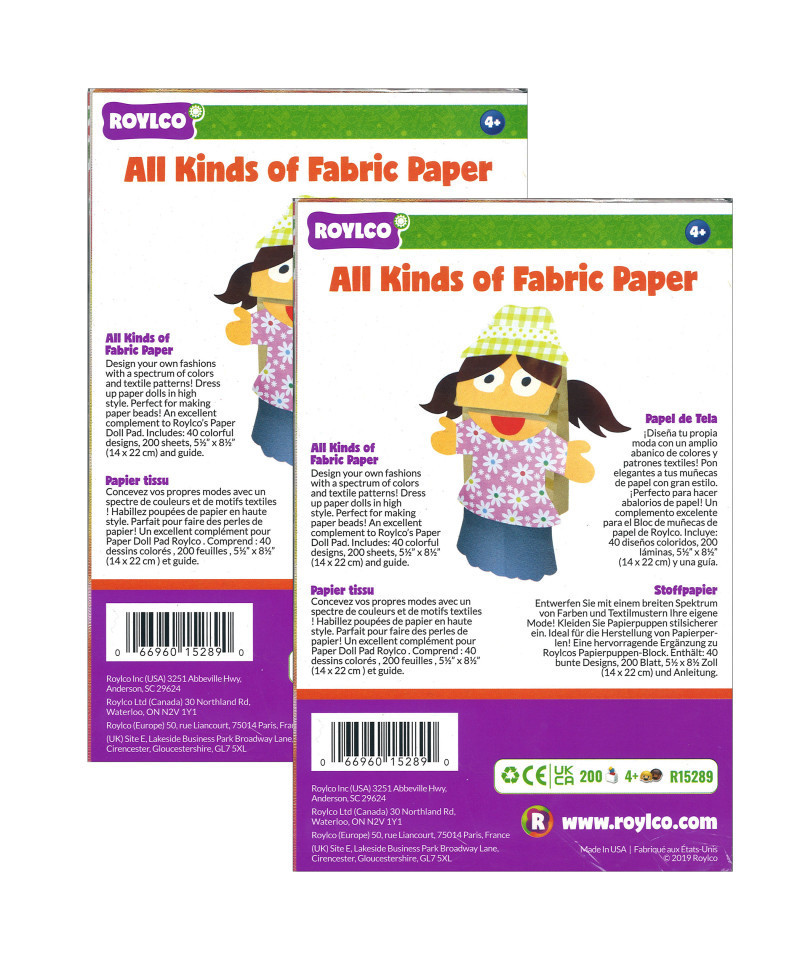 Design your own fashions with a spectrum of colors and textile patterns! Dress up paper dolls in high style. Perfect for making paper beads! An excellent complement for Roylco's Paper Doll Pad. Includes: 40 colorful designs, 200 sheets, 5.5 x 8.5" (14 x 22 cm) and guide. Sold as 2 packs for a total of 400 sheets.