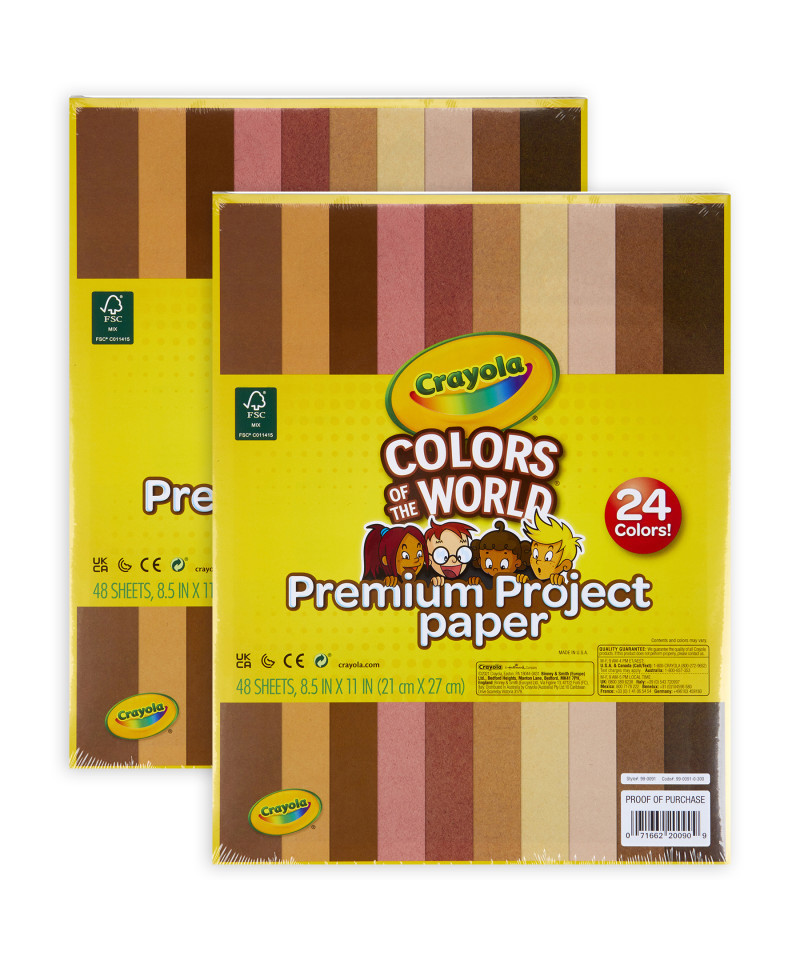 Calling all Crayola Colors of the World fans! This Crayola Construction Paper gives you the perfect color variety to pair with your favorite Colors of the World Crayons, Markers, and Colored Pencils (sold separately)! Each sheet of smooth, fade-resistant, premium construction paper uses longer and stronger fibers to create a heavyweight, high-quality surface finish. Not only does this mean longer-lasting works of art, it's also easy to fold, cut, score, and curl while resisting cracking and tearing. Plus Colors of the World Construction Paper colors are great for school projects and crafts at home! Each 8-1/2" x 11" sheet gives kids and adults the perfect creative space to express themselves! Each pack includes 48 sheets: 2 each of the 24 colors. Sold as 2 packs for a total of 96 sheets.