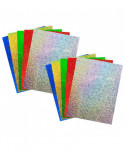 Use sparkly self-adhesive holographic paper and watch simple crafts projects take on supernatural dimensions. These sheets measure 8.5 x 11 inches. Self adhesive holographic paper is outstanding for making lively decorations, mosaics, costumes and craft projects. It will also perk up your scrapbook pages, memory albums and greeting cards without the need for glue. It is easy to cut to any shape or size, then just peel and stick. Hygloss Holographic sticker paper is made from the highest quality materials and is sure to exceed your expectations! Each pack includes 5 sheets in assorted colors. Sold as a pack of 2.