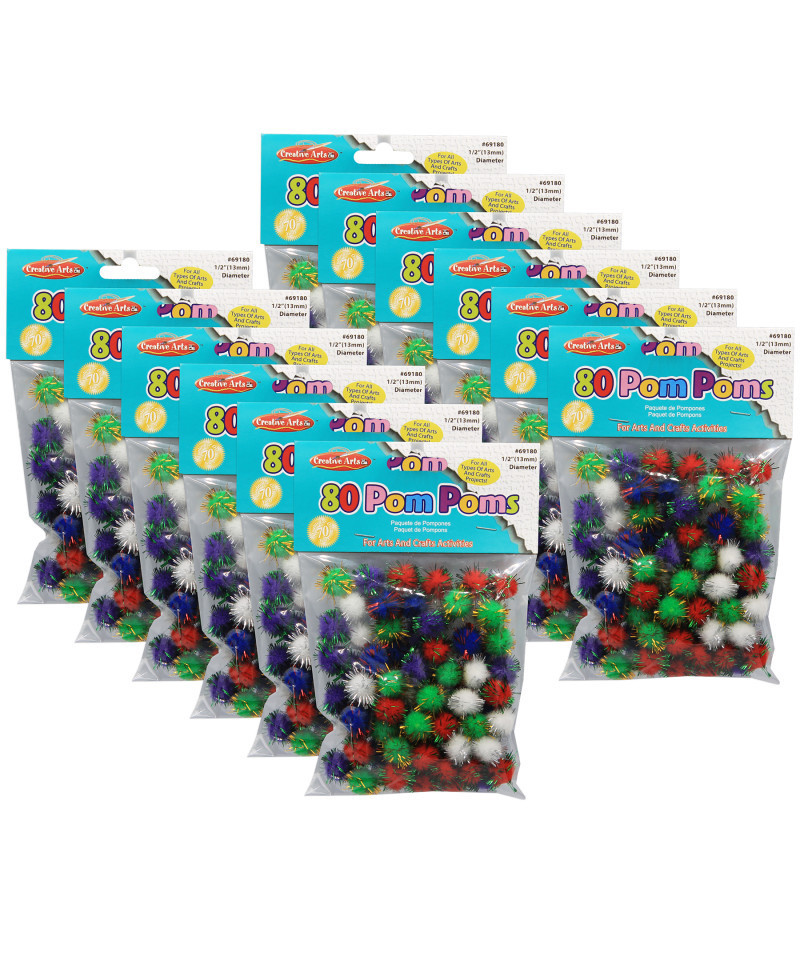Furry balls of fluff add life to your craft creations. Soft and Crush resistant Pom Poms are great for making dolls, ornaments or wherever your creativity takes you. Each pack includes 80 pom poms. Sold as 12 packs for a total of 960 pom poms.