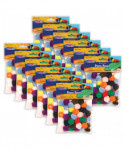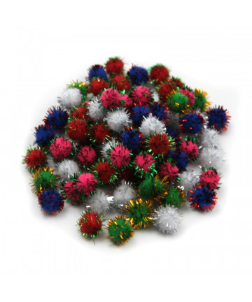 These 1" pom pons come in a variety of bright colors. Use with several types of glues to adhere to other poms, or to paper collages, mixed media projects, jewelry, backpacks, key fobs, and more. Each pack includes 50 pieces. Sold as 12 packs for a total of 600 pieces.