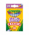 Colorful and sparkly—Crayola glitter crayons let kids add dazzle to their designs and coloring art projects with glitter infused with the crayon wax. No-mess creative glitter play! Each pack includes 24 crayons in a reusable tuck box.