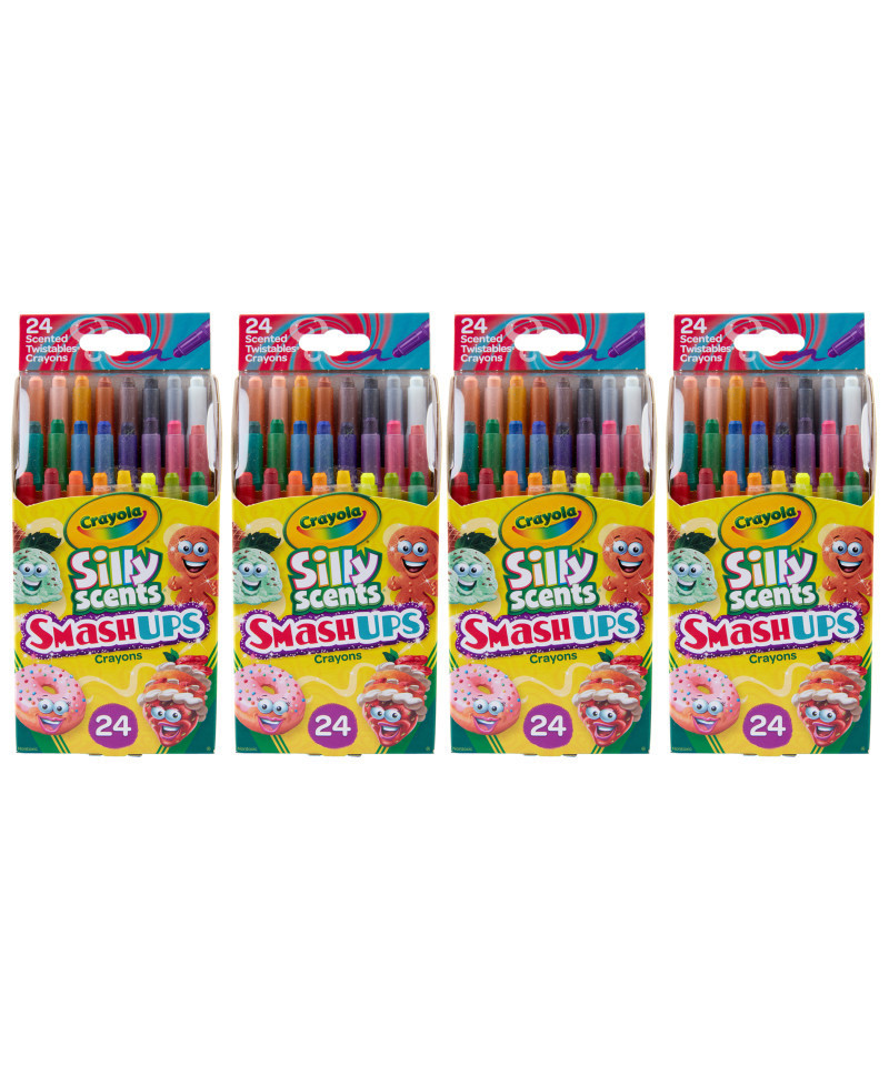 - CRAYOLA SCENTED CRAYONS: Sold as 4 packs, each pack includes 24 Scented Mini Twistables Crayons in delightful Smash Up scents.