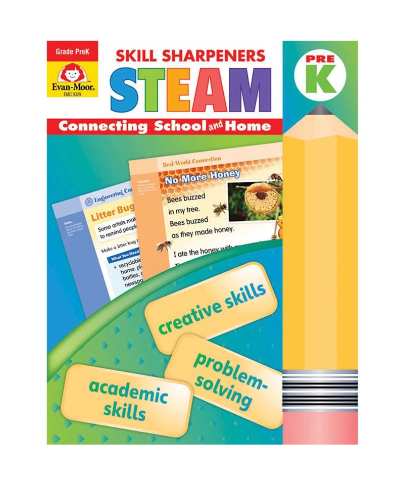 Creatively engage children in solving real-world problems with Skill Sharpeners: STEAM. STEAM is an approach to project-based learning that uses science, technology, engineering, art, and mathematics to engage children in empathizing, thinking critically, collaborating, and coming up with solutions to solve real-world problems.
