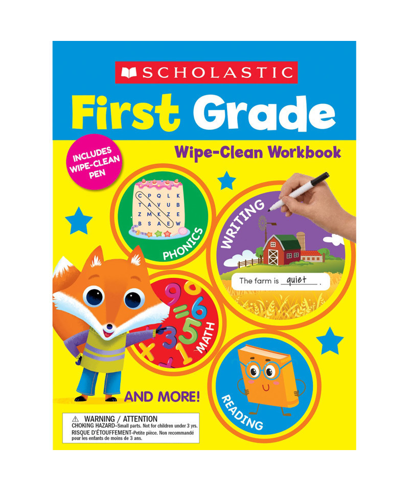 Scholastic believes learning should be fun! This irresistible activity book includes delightful activities that are just right for your child. Play-based pages impart key grade 1 skills through ultra-engaging activities. Your child will dive into fun phonics, reading, writing, and math activities and more! Use the special pen to complete each page, then wipe clean to start again.