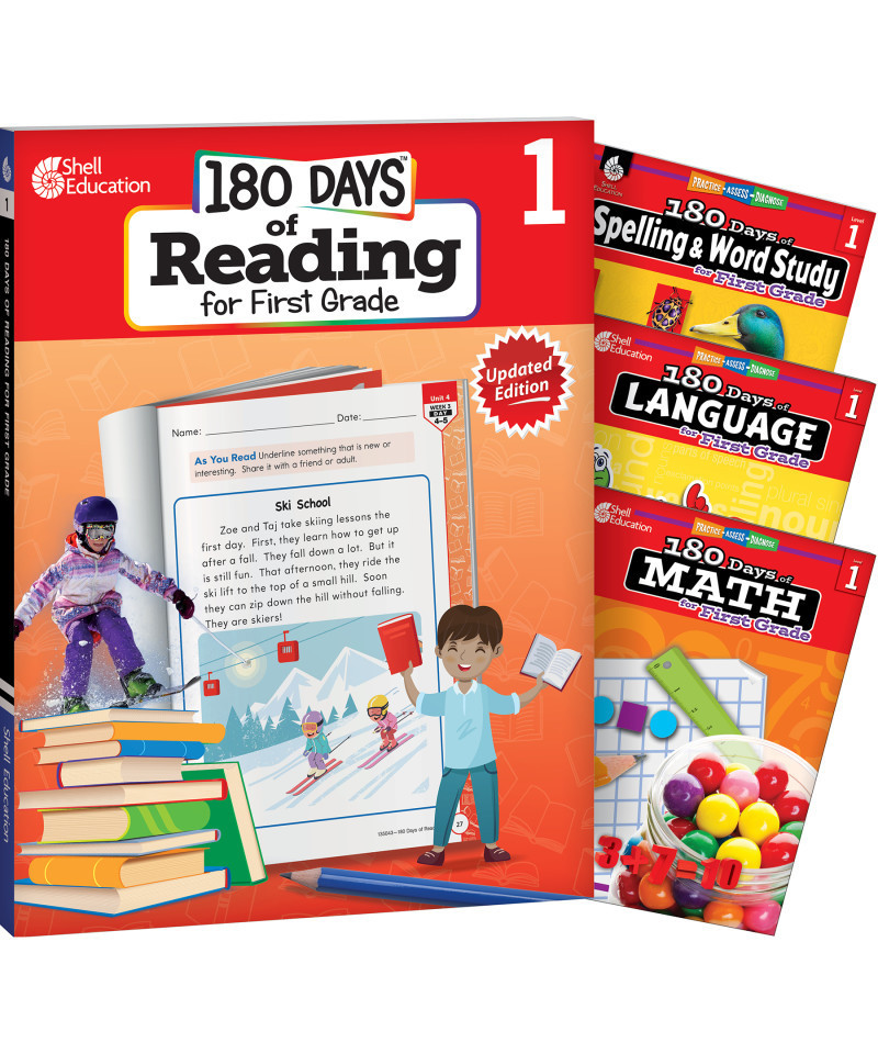 • This set includes 4 grade-specific 180 Days books: Reading, Spelling, Language, and Math.