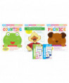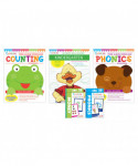The Kindergarten Ultimate Skill Builder Workbook supports readiness for school-level work and covers a complete range of academic skills including: shapes & sizes, patterns, money, telling time, phonics, alphabetic order, tracing, writing, story sequence, and more! Counting Workbook skills include identifying and naming numbers 1-20, using objects to help identify numbers, counting to 100 by ones and tens, and simple addition. Phonics Workbook skills include identifying initial consonant sounds, recognizing short vowel sounds with common spellings, reading simple three letter words, and identifying long vowel sounds with the silent "e". Includes the Kindergarten Ultimate Skill Builder Workbook, Counting Workbook, Phonics Workbook, Money Flash Cards, and Phonics Flashcards.