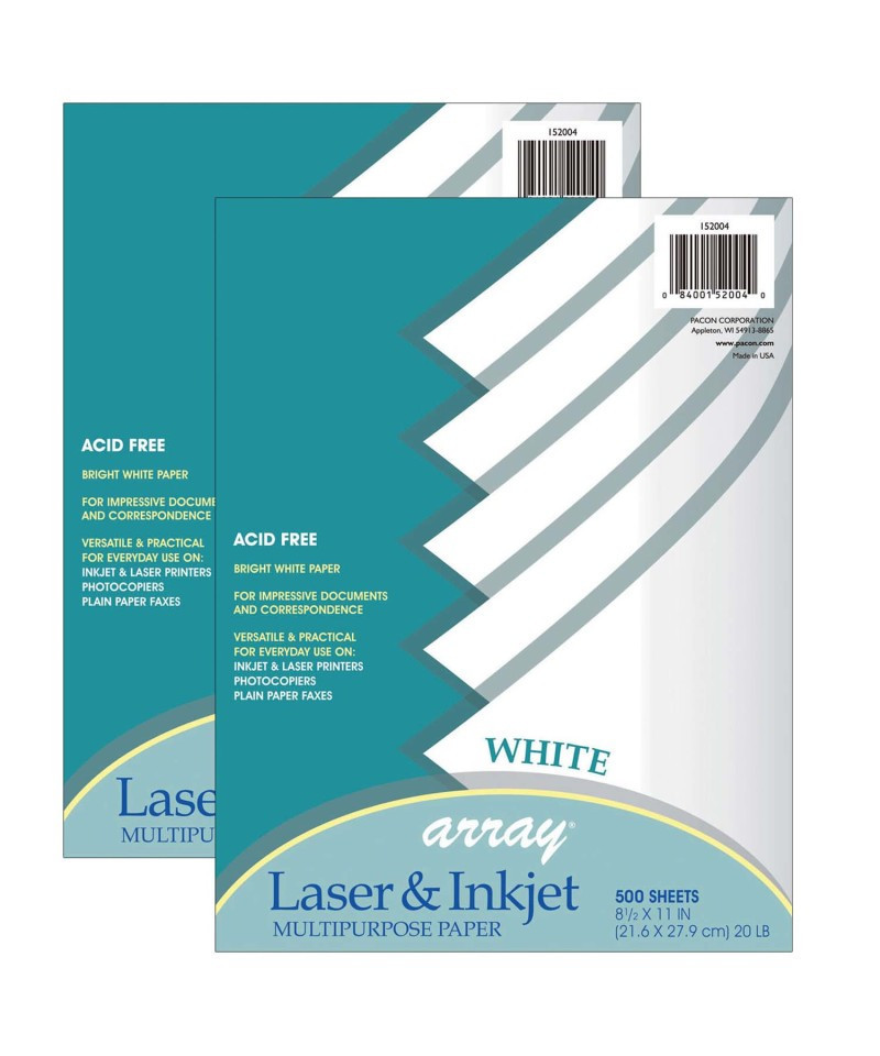 Multi-purpose 20 lb. paper compatible with copiers and laser and inkjet printers. Packages come film wrapped with an attractive top sheet. Recyclable. Paper measures 8.5" x 11". Each pack includes 500 sheets. Sold as 2 packs for a total of 1000 sheets.