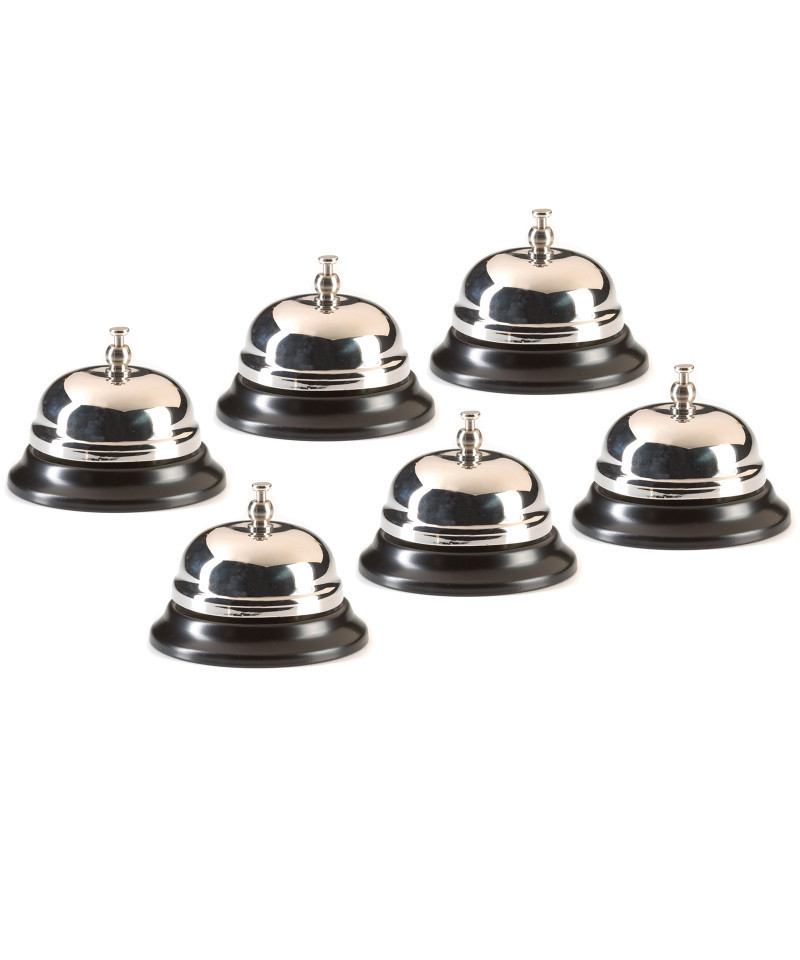 Ashley desk call bells have a design that is time-tested and is a favorite in all classrooms. Features a 3" base. High quality bells. Great for teacher gifts or classroom use. Sold as a pack of 6 bells.