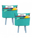 - Personalize the holder by inserting a name card into the vinyl pocket that is stitched to the top of the Chair Cubbie™
