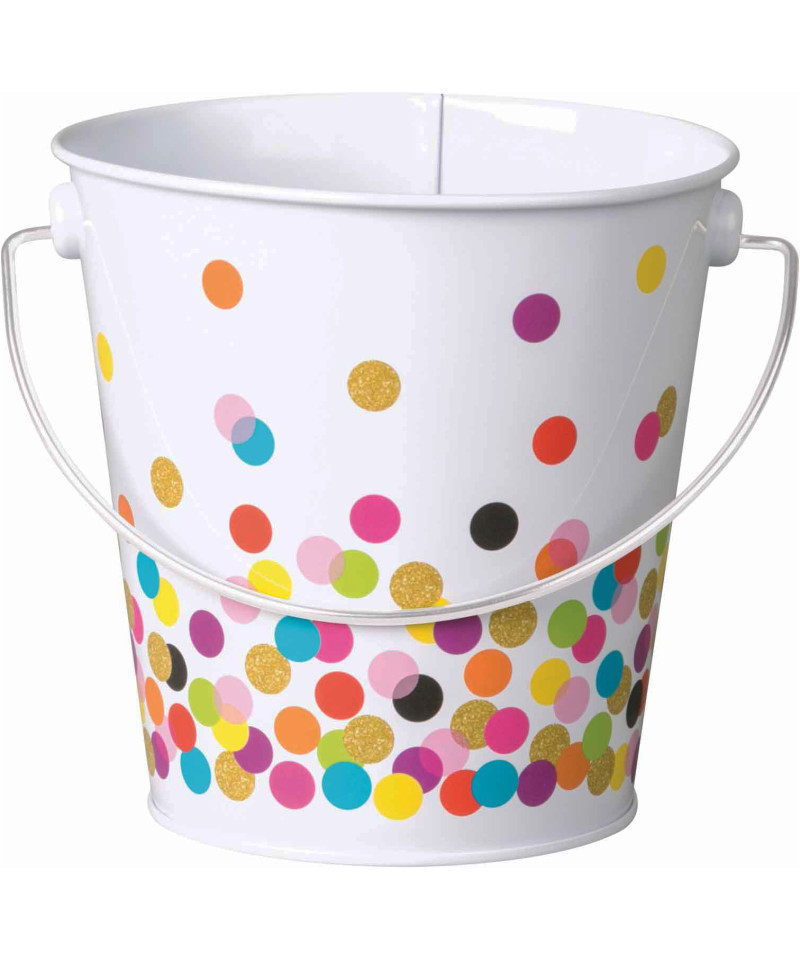 Organize small classroom items and make them easily accessible with these adorable metal buckets. They're great for holding scissors, pens, pencils, markers, glue sticks, paint brushes, and more. Each bucket is made from sturdy metal and includes a handle for easy carrying. Buckets measure 4-1/8" wide and 4-1/8" high.