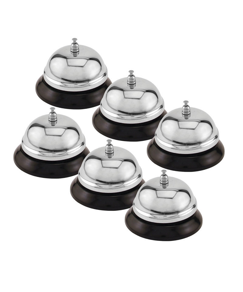 The call bell is a simple yet highly effective tool to use for classroom management and transition activities. Use the call bell to help get children's attention while they are immersed in one activity to help transition them into another activity. The bell is made from sturdy chromium with a black metal base, for long-lasting usage. It measures 3.5 inches diameter at the base and is 2.25 inches high. Sold as a pack of 6 hand bells.