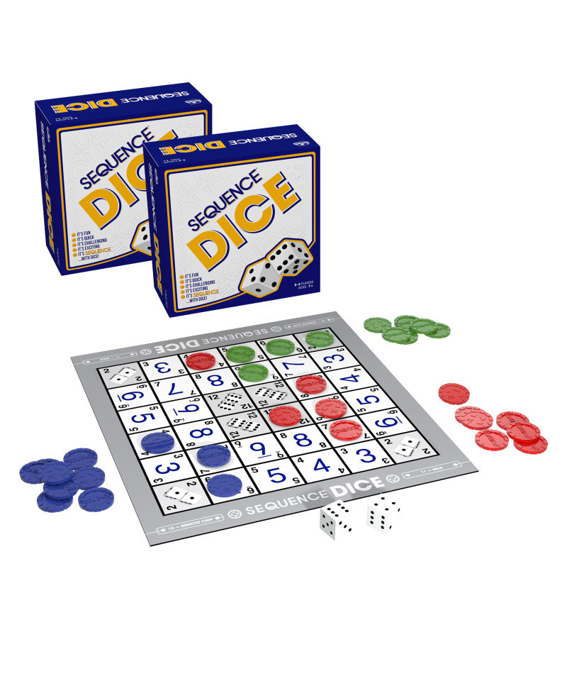 Contents: folding game board, 2 game dice, 60 sequence playing chips, game instructions
