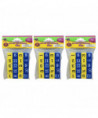 Yellow dice have numerals 1-6. Blue dice have numerals 7-12. Foam is lightweight, soft, quiet, and washable. Square edges stop the dice from rolling too far. Comes in a resealable storage bag. Teaching tips are included. 3/4" cubes. Each pack includes 20 dice, 10 yellow and 10 blue. Sold as 3 packs for a total of 60 dice.