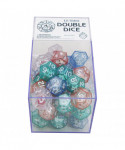 The 12-sided double dice are unique die within a die. The interior die is a mini-d12 and the outer die is also a d12. This two dice combination of dodecahedrons allows for interesting options on every roll. Each time the die is rolled the player will get two results, one from the inside die and one from the outside die. These two results can be added together, multiplied by each other and possibly even divided by each other. Each box includes 40 dice.