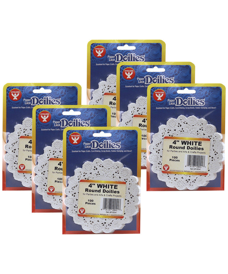 Great for everyday use and holiday decorating! The round paper doilies will make table settings festive, bulletin boards appealing, crafts projects... Add to cart Hygloss® Round Paper Lace Doilies, White, 6", 100 Per... $22.47