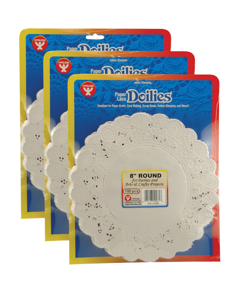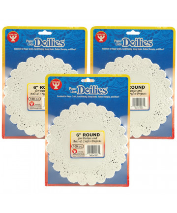 Great for everyday use and holiday decorating! Use paper doilies to make original holiday crafts, adorn festive table settings or embellish classrooms and desks. The round paper doilies will make table settings festive, bulletin boards appealing, crafts projects outstanding and card making a blast. Try paper doilies at home and at school. Use for craft projects, cards, window decorations, and much more! Doilies measure 8". Each pack includes 100 doilies. Sold as a pack of 3 for a total of 300 paper doilies total.