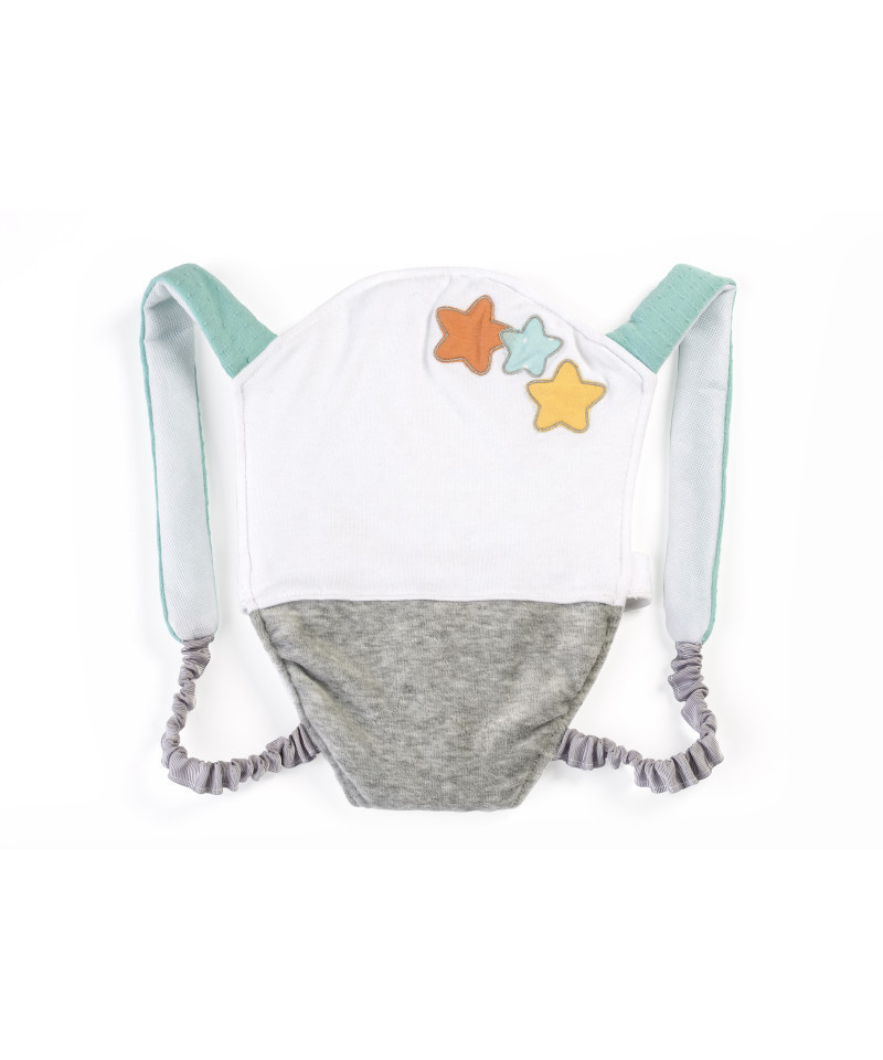Part of a collection of clothes and accessories for a new-born dolls. It includes the most common clothes and accessories in everyday baby situations such as bath time, nap time or going out for a walk. With different types of fasteners to help the development of fine psychomotor skills. Comes with 1 backpack. Gender neutral colors. Soft to the touch fabric. Perfect accessory for 15" dolls.