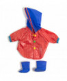 Raincoat and boots for dolls sized 15"-15 3/4". Made of shiny fabric. Unisex. Includes shoes and buttons for children to practice dressing skills. Designed to help children meet their needs of self-awareness and personal autonomy.