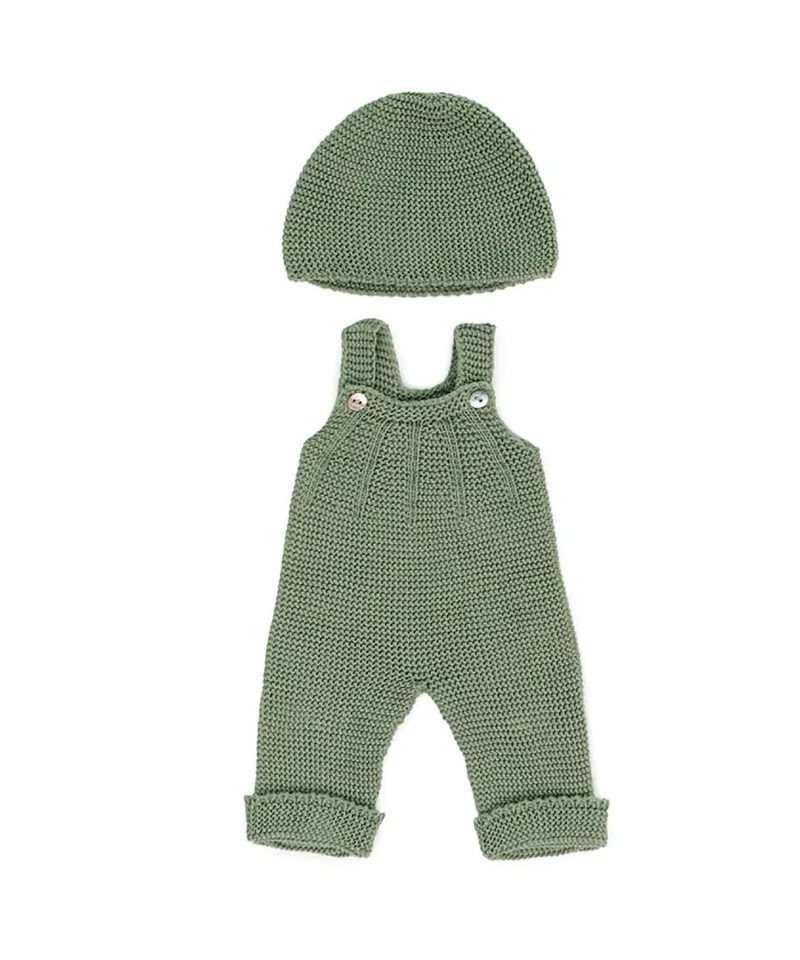 Miniland Clothes for 15" Dolls, Knitted Outfit Overall & Beanie Hat