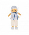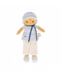 Eli is a fabric doll dressed as a little sailor, who invites you to go on an adventure near the water. The doll measures 12.48 inches and is suitable for babies from birth. Eli loves touching, climbing and jumping in the sea, as evidenced by her light, casual outfit. This doll wears a sailor top with contrasting stripes that will be easy for young children to spot. Its delicate fish embroidery is a reminder of the sea and the ocean, the element Eli prefers to play in. Eli's baggy trousers are easy for youngsters' clumsy hands to grasp. Thanks to its elegant hat, Eli is not afraid of sunburns. Around its neck is a pretty ribbon on which you can write baby's name. The size of this baby doll makes it ideal for cuddling, and little hands can easily grab the doll by the arms or legs. Eli doll is made from polyester and cotton. It is machine washable at 30 degrees C and comes in a beautiful gift box, for a tender baby gift.