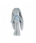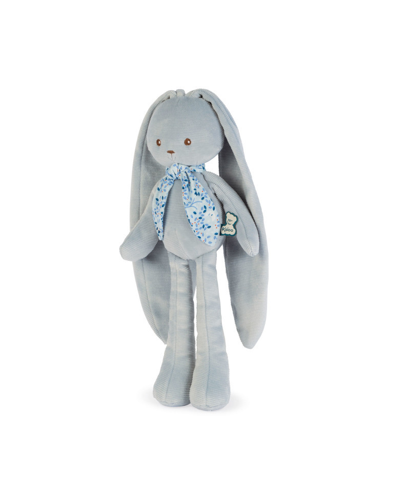 This cheerful blue rabbit of 13.65 inches has such long ears that you can hang it anywhere to keep it and never lose it. He can do anything: do headstands, go on the see-saw, cling to the clothesline, and even swing all the way to the moon. Its extra-long ears help the rabbit to wrap your baby in tender hugs and share sweet moments with them. Machine washable. Presented in a pretty giftbox you can customize with a message at the allocated space under the cover.