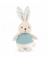 Here is a sweet rabbit doll with a plump head and body waiting to give the warmest cuddles. Babies will instantly love it in its muslin top, adorned with little embroidered buttons. Its ears and feet in peach fabric are printed with a poetic, classic and delicate pattern. Stuffed with recycled polyester stuffing. Machine washable. Presented in a pretty giftbox you can customize with a message at the allocated space under the cover. Measures 8.58 inches.